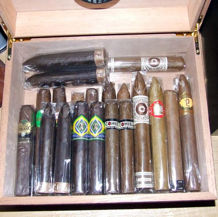 Here's a pic of my very humble 20-40 count humidor. I just got a new 75-100 count humi and am getting started on filling it.