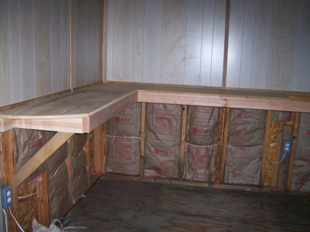 I got the "bar" roughed in this weekend, just have to decide what kind of material I want to top and finish it with. Also need to get some more paneling for one wall, thinking of using peg board. Here are some pics: