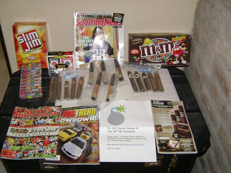 WOW! You guys continue to impress! I must say this from the bottom of my heart, THANK YOU!! I came back to my base camp after about 5 days of traveling, seeing my Soldiers on the battlefield and I am told I have a box from mail call. I look at the label and the first thing I recognize is the bold lettering that says "NEUROMANCER-CA" I then said OH CRAP, ITS A BOMB! And sure as heck here is what I got hit with.
