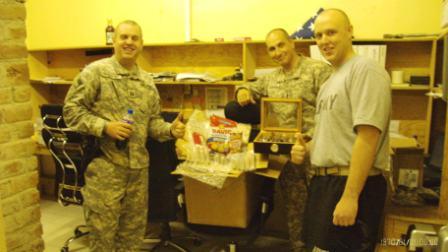 OK, OK. So today I got back from my missions and seeing my other Soldiers out in the battlefield and when I got back I had a couple boxes filled with goodies and cigars. I want to say THANK YOU to HOTREDs for sending me a box full of cigars, AWESOME! THANK YOU. Attached is a picture of myself (middle of three with bald head), my commander on left and one of my LTs on the right side of me. They were like Holy S****. My eyes were as big as they could be. You folks are awesome. Thanks so much. Tonight I am hosting a HERF with some fellow Soldiers and we are going to enjoy these cigars. THANK YOU ONCE AGAIN SO MUCH! I decided to fill my small little humidor with some as well.