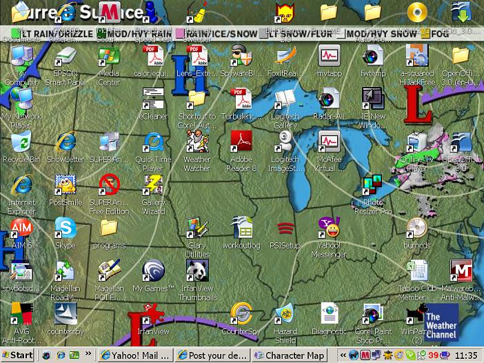 Hey Windows users, it looks better if you right click on the desktop.... mouse over "Arrange Icons by..." and then uncheck "Show Desktop Icons" Then do your print screen