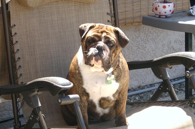 Here's our English Bulldog, Zoe... she loves to come out and have a cigar with me!