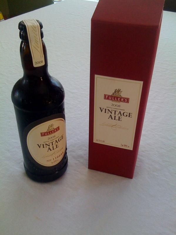 I have always loved Fuller's brews. From the very first time I tasted Fuller's ESB I was in love. I noticed this little lovely in the Total Wine & more... my preferred place to pick up a few exotic and previously untried brews from all over the globe. At a mere $8.99 per bottle I could not resist. So I'll make this review short and sweet. This thing is about as opulent a beer as I've seen. Packaged in a box similar to those that nicer scotches come in... with a fancy embossed label reading No. 110688... of only 150,000 bottles made. Beautiful in it's simplicity and elegance. I'm afraid I could not describe with much accuracy the flavors that lie within this bottle. There's a noticible sweetness. Certainly a caramel hue to the actual liquid. Sweetness, maltiness, and an underlying layer of what almost strikes the palate of some fruit... maybe not citrus... but something close... like a dried apricot or papaya... something fairly mild like that. Over all, a wonderful experience... and since it was a "Vintage Ale" I decided to smoke a "vintage cigar" with it. If you like a stronger beer without a huge load of hops... see if you can track one of these guys down. This is one worthy or buying 2... 1 to try now... 1 to put away for a few years. It can only get better with age. I may see if I can track down half a dozen more bottles or so of this to have and to save. |