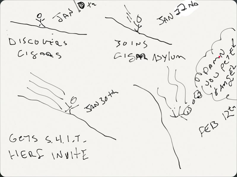 Jan 30th - Gets S.H.I.T. herf invite, is FORCED to try new and exotic cigars (i.e., good ones)