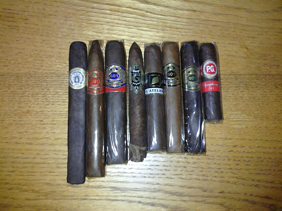 ![]() A box of Liga Privada Feral Flying Pigs 5 1/2x60 bought at http://www.smallbatchcigar.com/ Bought elsewhere: 601 Blue Label Prominente Box Pressed 10 PACK Maduro 5 1/2 x 56 Montecristo Classic Robusto 3 PACK 5 x 52 MONTECRISTO CLASSIC TORO Box of 5 6 x 52 PLUS MONTECRISTO ASHTRAY BAUZA CIGAR COLLECTION WITH VIRTIGO LIGHTER Box of 6 - 6 1/2X50 And a bomb sent to me from MrSmallBatch: Left to Right. 1: Tatuaje TAA Limited Edition exclusive 2012 6 1/4x50 2: 601 Red Serie Torpedo 6x52 3: The 601 Serie Blue BP 5 1/2x56 4: Graycliff Espresso Series Torpedo 5 1/4x50 5: L’Atelier “From the Makers of Tatuaje” LAT52 4 3/4x52 6: 601 Serie Black Robusto 5x50 7: 601 Serie Green Robusto 5x50 8: Paul Garmirian Symphony 20 BOMBONES 3 1/2x46