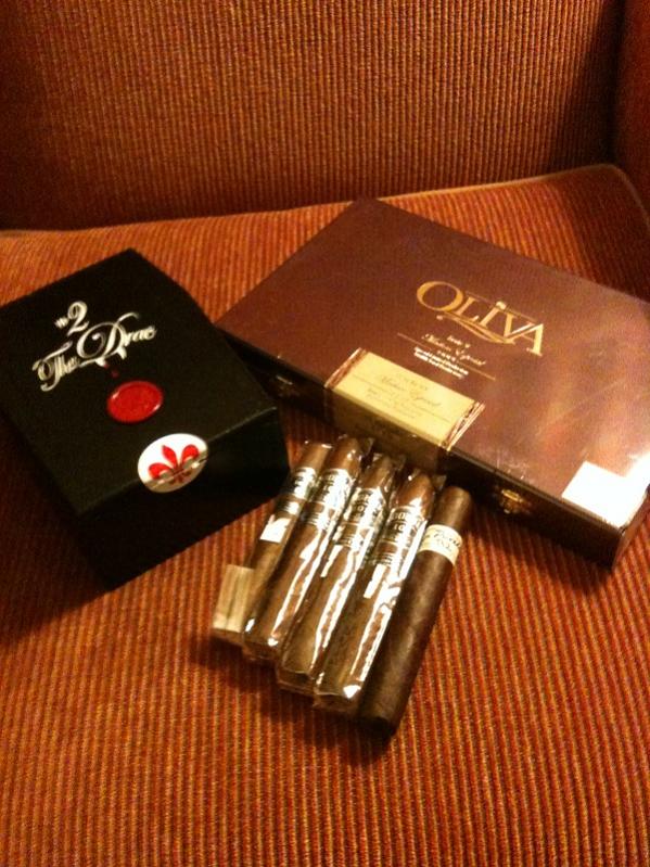 Crappy pic, great cigars... Tat Dracs, Oliva V Maduros, Room 101, and a T-52.