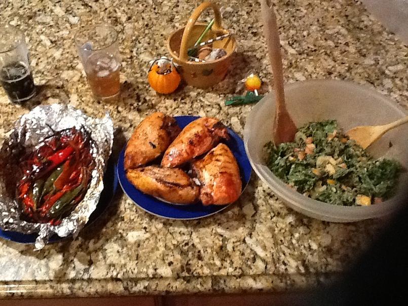 Tonight it's hickory smoked chicken, kale Waldorf Salad and grill roasted hot peppers. Washing it down with a Otter Creek Black IPA