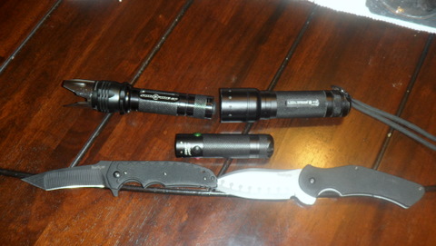 We have here a Kershaw Tanto Groove, Kershaw Junkyard dog II composite, Coast LED Lenser, Coast LED Lenser T7, and a Surefire 6P. I have to many flashlights and need to get rid of some