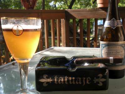 Montecristo Vintage 1999 platinum series and a Dogfish head Sautea, PERFECT PAIR. Both are lighter cigars/beer and don't over power eachother one bit. A match made in heaven. Pictures after I finish both
