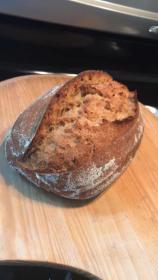 As you can see we all dug into one loaf already and is half gone. Recipe usually makes two 1.5lb boules. Decided this time to split one in half again at shapping and make batards. My shaping for them and for baquettes needs lots of work. Ha IMG_20200528_104122 by kydsid, on Flickr