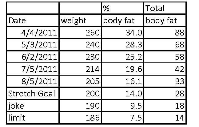 I know what you mean Dave. I had set a goal of 220, but as I near it, I"m not content with the way I look. I want a leaner look. We'll see how it goes as I progress through the workout program I"m on. Keep up the good work though, you'll hit 200 in no time.