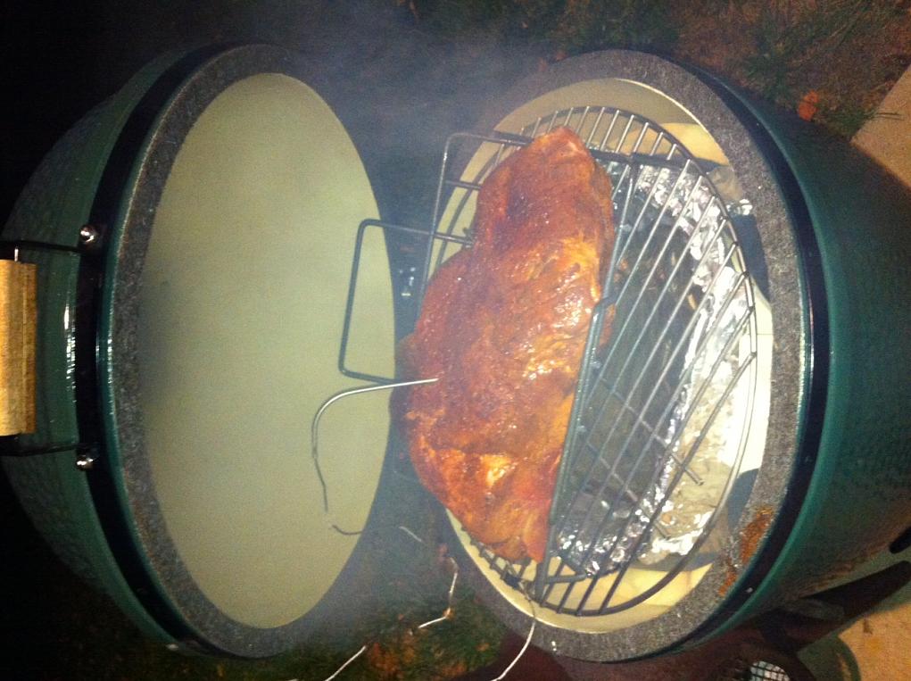 Got the box back to the house this evening and spent some time putting together the stand and the egg itself. It's all ready to rock! Afterwards I went out and picked up a cover for it, a few bags of wood chunks (hickory, oak, and cherry), and a 9lb bone in pork shoulder. I put the rub together once I got home and everything thing is ready to go. My meat thermometer should arrive tomorrow in the mail. I'm going to prep the shoulder, put the rub on it and wrap it in plastic tomorrow night and let it sit in the fridge until Friday evening when I start the egg up for the first time. I'll be sure to take and post some pictures of the process for everyone! Here's to hoping my first cook comes out ok! SmokinGator has been very helpful thus far. Any other advice is welcomed. I plan on using Cherry wood as has been recommended by many I've talked to. This cook looks to be around 13-14 hours, but we'll see how it goes. Plan on putting it on Friday evening then waking up early Saturday morning to foil wrap it and keep it going until it's ready to go at which point I'll be throwing it in a cooler wrapped in a towel until lunch time around 3pm Saturday. |