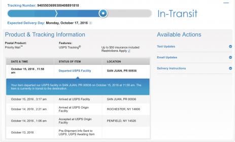 Says it will be here Monday, I'm sure it will be, my luck effects everything, not limited to me or my immediate space it seems, if my name is attached the sky is the limit. Only makes sense a package would go from NY to PR before heading west