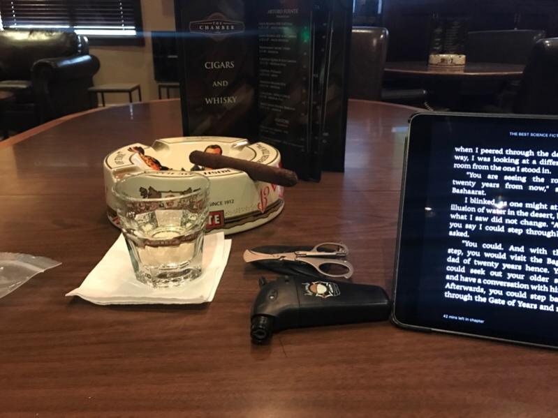 Kicked out of the house for the photo shoot, so I am celebrating with tequila and a cigar at the Shilo!