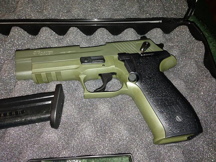 Went to Cabelas Monday to see what they might have left. Plus just to kill the afternoon. Surprisingly they had the Tactical Solutions .22lr Glock conversion kit on hand and for my model. $380 though, ouch. So I bought this instead. Sig Mosquito in OD green. Also found ammo locally for it, so I've got my cheapo range plinking setup.