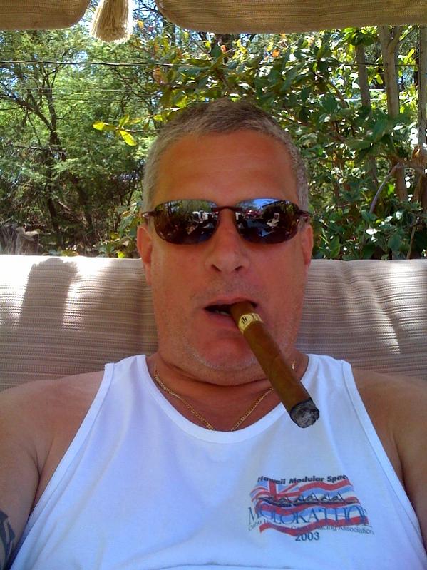 Don Fernando and myself the night before the bbq herf at my place last weekend, just after preparing for the herf, we had a smoke.