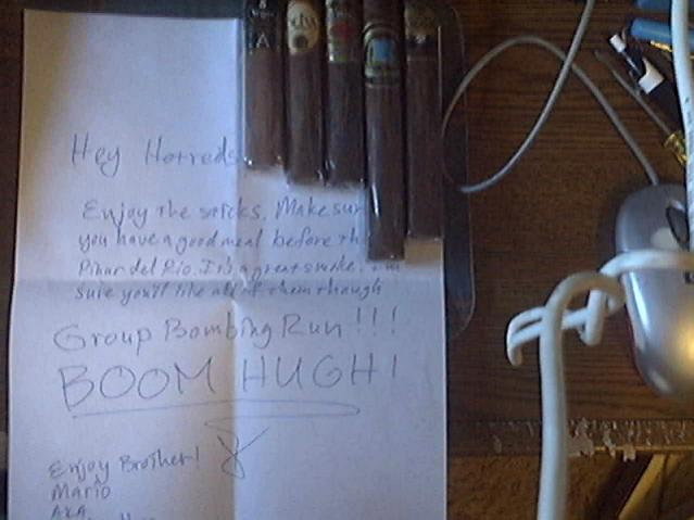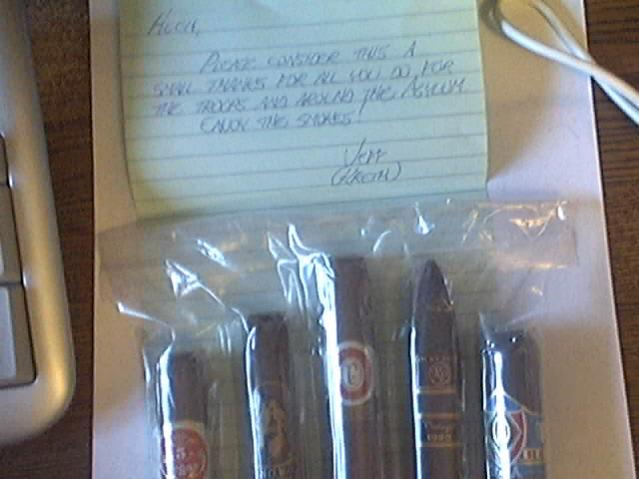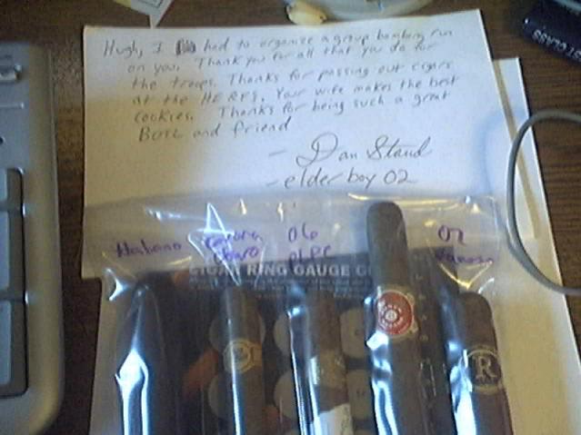 I am deeply humbled by all those who took the time and trouble to send me smokes! I again thank you so very, very much! HUGHRAH!