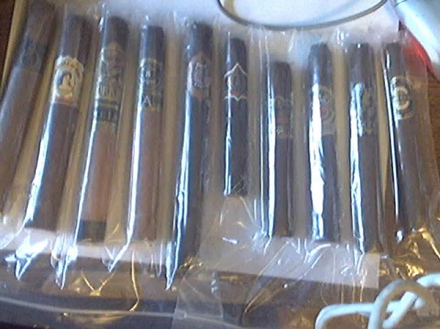 Cowboy Stitch saddled up and roped me in easily with ten beauties including a Riserva Miraflor(excellent smoke), aAroma de Cuba(a fav), A Ghurka Triple Ligero(danger, Will Robinson!), A 5 Vegas A, a Graycliff 1666(another fav), a CAO b;lack label, a Padilla 1932(glad to get another chance at this- the first one I couldn't finish- it burned my lips- the wrapper was so spicy. This time I'll stay with it!) an Alec Bradley Overture, a Man O War, and a Montecruz. Thank-you so very much, brother!