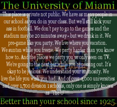 Well as a UM alum I couldn't decide who to root for in this game . . . ah who am I kidding? I LOVE it when FSU gets CRUSHED. Even if it means that UF gets a win.
