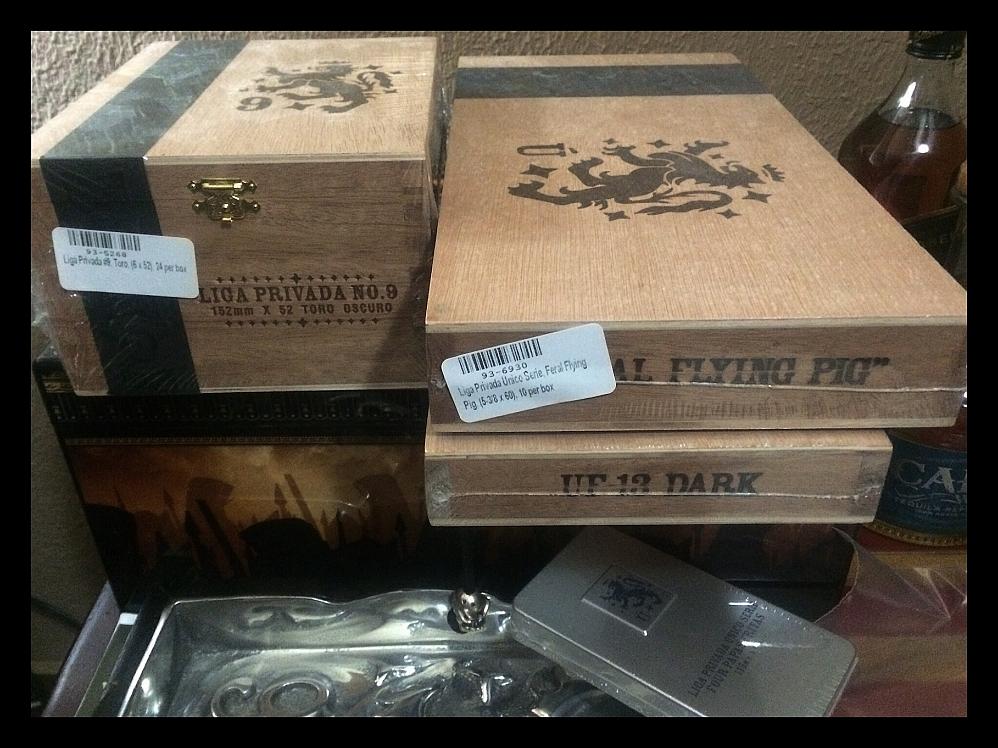 Today I scored a box of Feral Flying Pigs,a box of UF13's,a box of Liga Privada No.9's and a tin of Papa Fritas to top it all off!!! Today has been a good day!