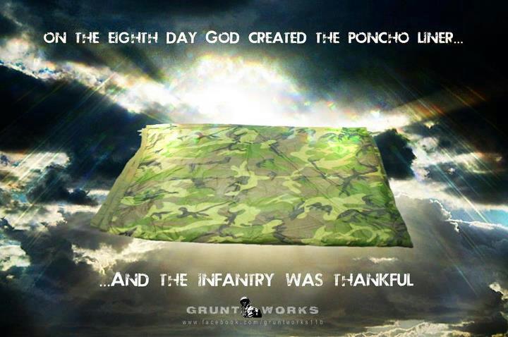 That poncho liner inside a sleeping bag made all the difference in the world from freezing to being warm. I still have one somewhere I think...but I'm thinking it may have gotten swiped at a football game. Oh ebay, here I come....
