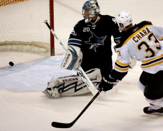 Tim Tomas 41 Stops. Chara with the Game winner in the Shootout.