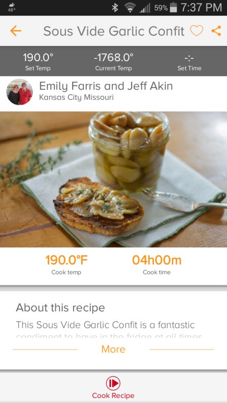 I did some garlic confit yesterday. Real simple, and real delicious. Followed the recipe on the Anova app. ![]() I have some ribeye steaks for later tonight. Going to sear them off with only the Searzall.