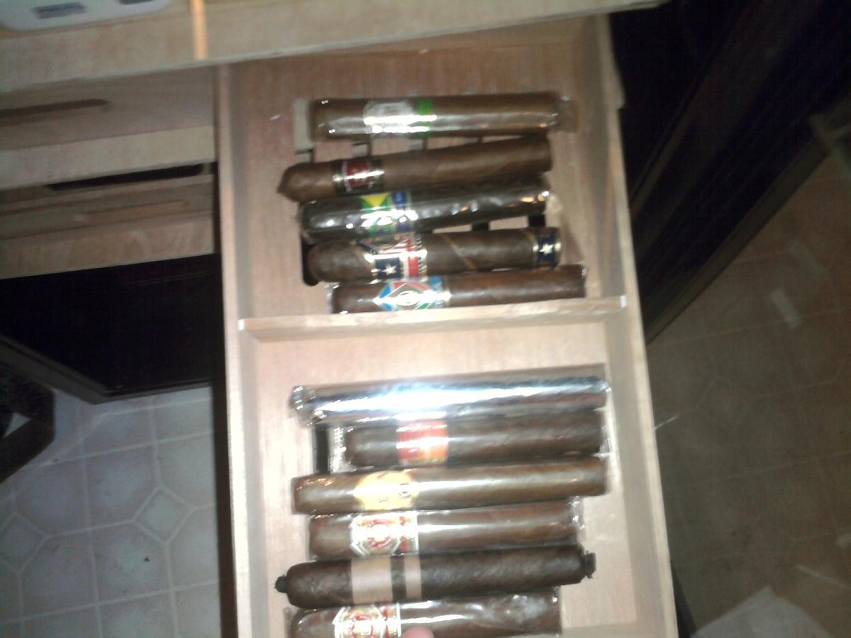 Here is my desktop, keeps the on-hand smokes and randoms, "top shelf" on the right. ![]() ![]() Here's the cooler nestled away in my closet, as you can see I've got plenty of room left after a recent game of tetris. Have a box of robustos on the way, I figure I can squeeze that and maybe 3 to 5 more cabs in there once I smoke through the last 5 maximus in that box or move them to my desktop. ![]() ![]() See now if you're a real cigar guy, keeping your cigars organized takes priority over organized shoes.