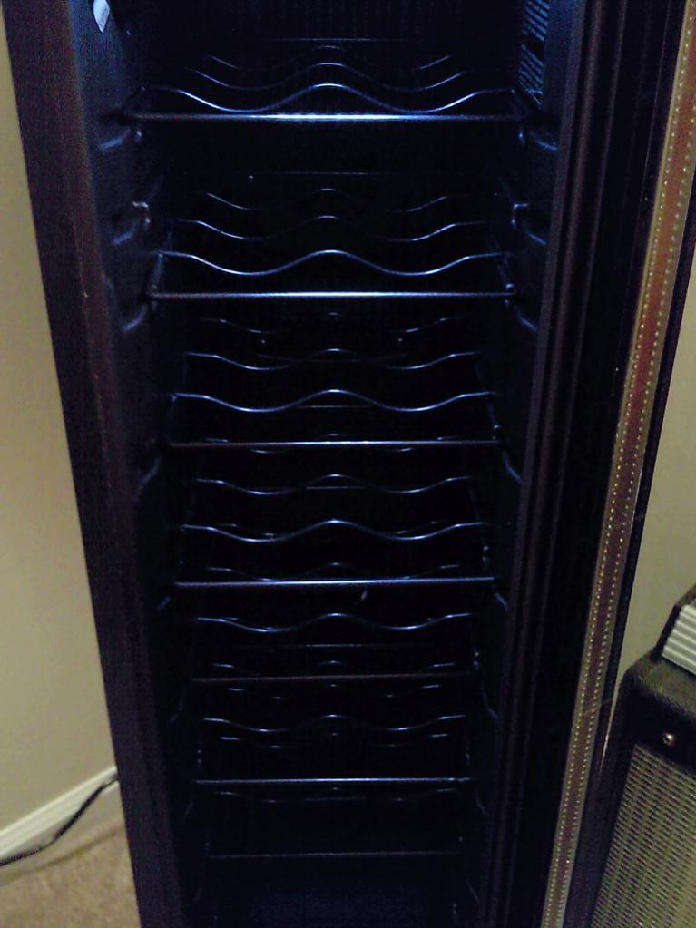 I was at Lowes today with my fam, and decided to bite the bullet and get a Wine Fridge. The consensus was that this one was the nicest looking, and should be the right size. It's a Harier 18 bottle thermoelectric, kinda tall and skinny, and even has a cool little light! Damn I'm like a kid on Christmas here lol Gonna order some beads in a few to keep humidity, but with just some cups of water its already up to 55% after only an hour or so. Looking forward to filling this baby and aging some CCs