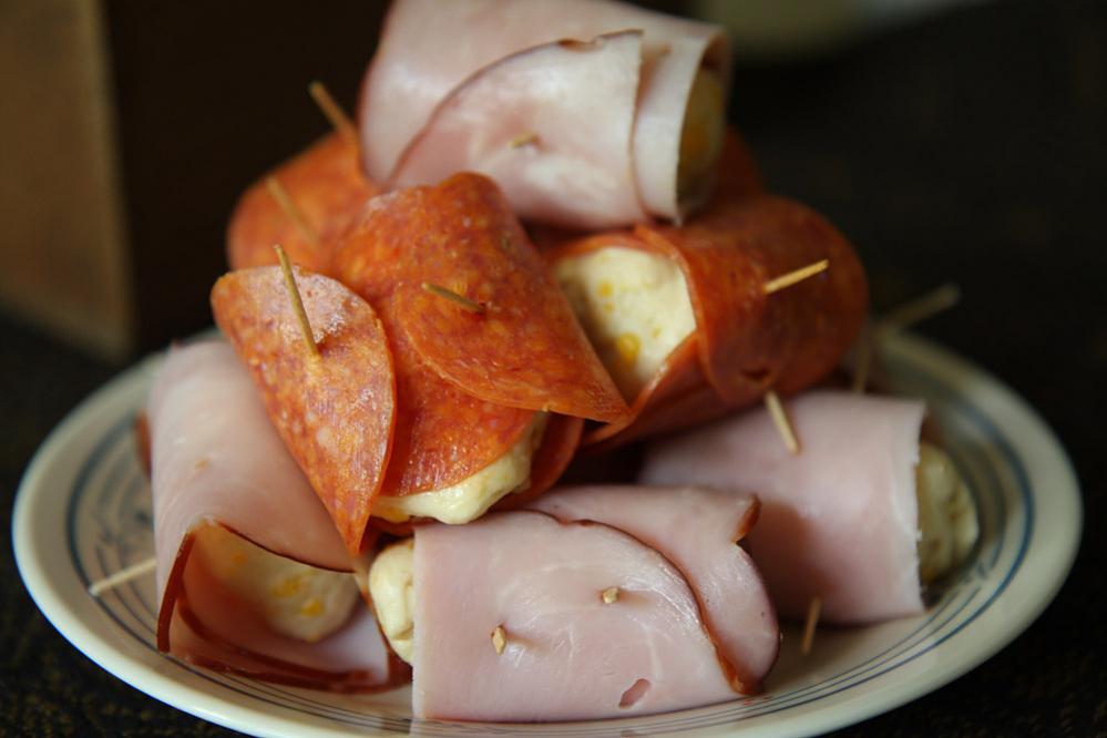 Checked the meat drawer for other options. Found some sliced ham, and some pepperoni. I thought what the hell, and worked with what I had.