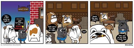 Anyway, she writes a weekly bulldog comic strip - this week was inspired by a visit we recently made to a local lounge that frowns on our CC habit.